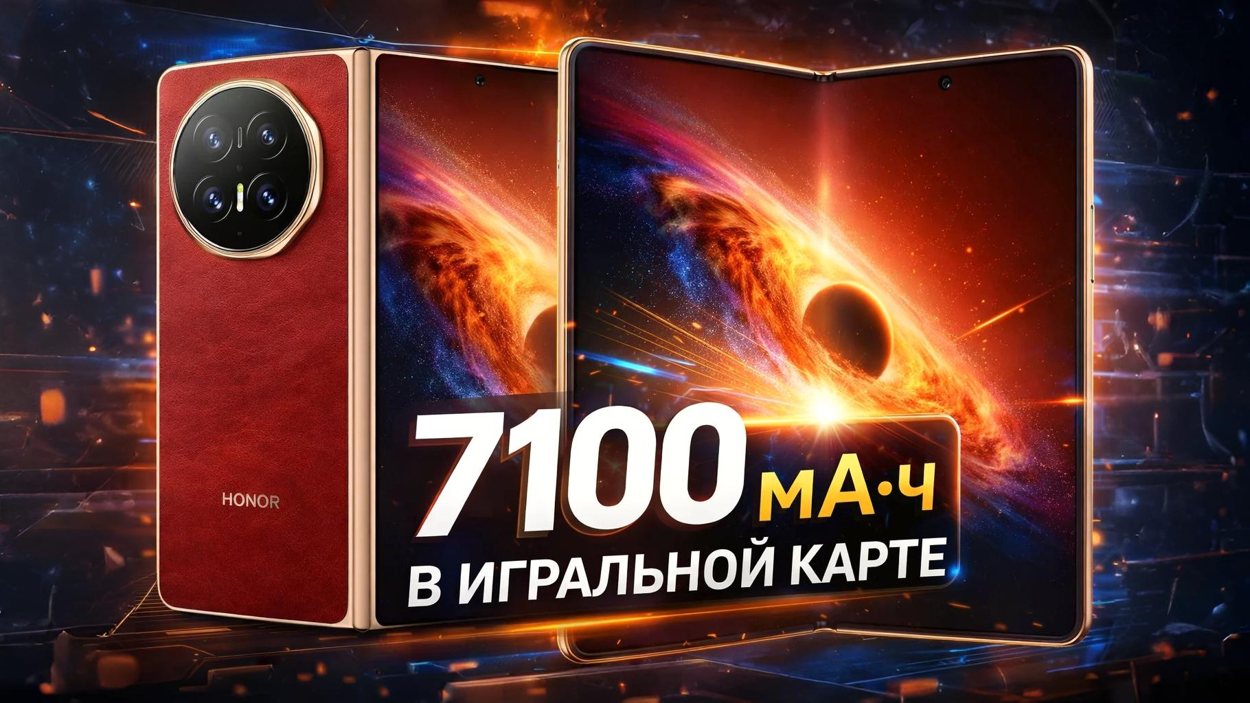Инженерам HONOR снова удалось совместить несовместимое: корпус стал легче и тоньше, но при этом начинка нисколько не пострадала. Наоборот — производительность подросла, с охлаждением полный порядок, камеры прокачали, да еще и защиту от воды с пылью подтянули до серьезных стандартов IP68 и IP69. Но самый сок, конечно, внутри. Аккумулятор вырос в объемах с 5820 мА·ч (как было у Magic V5) до просто космических 7100 мА·ч. Такого рывка добились благодаря коллаборации с ATL и внедрению аккумуляторов пятого поколения на кремнии и углероде, где долю кремния увеличили сразу на четверть.